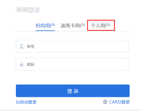 登录方法——在校外访问读秀首页(https://www.duxiu.com/),页面会显示系统登录界面,选择“个人用户”登录,使用之前注册过的学习通(超星数字图书馆)个人账号登录即可。
